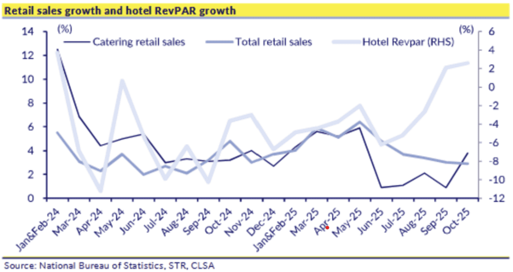 Sin embargo, el crecimiento de la oferta ha comenzado a desacelerarse, mientras que la demanda se mantiene resistente, de modo que los ingresos hoteleros por habitación disponible por fin han cambiado de tendencia de manera positiva en los últimos meses. Esto es favorable para Trip.com, que obtiene una parte significativa de su rentabilidad de las reservas hoteleras nacionales, y aún más para H World, que es la segunda cadena hotelera más grande de China.
