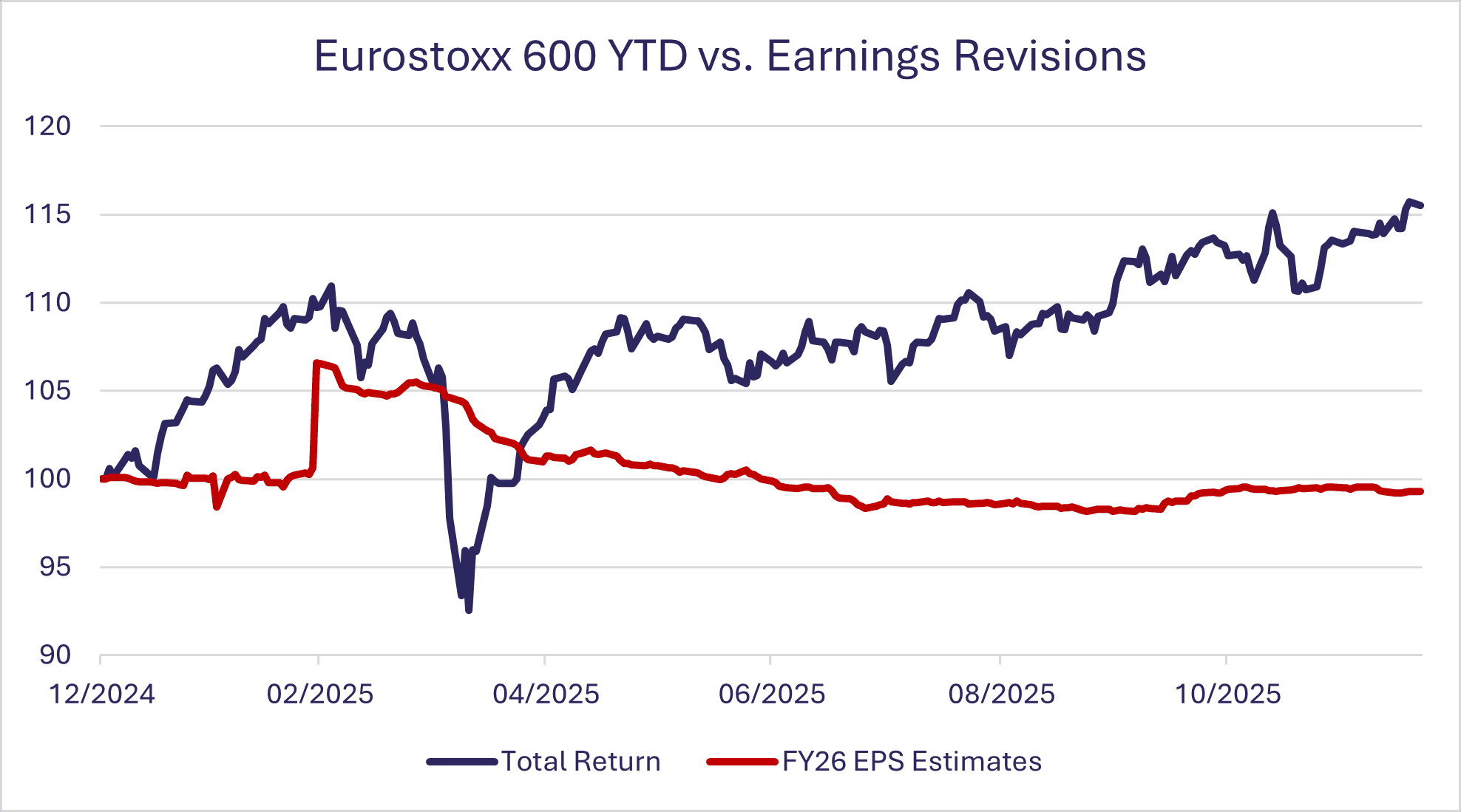 Sin embargo, el patrón de la subida invita a la prudencia. La revalorización del mercado europeo no ha venido acompañada, hasta ahora, de revisiones al alza equivalentes en las estimaciones de beneficios para 2026. Esto sugiere que una parte importante del avance se explica por expansión de múltiplos más que por mejora de fundamentales. En otras palabras, el mercado ha pagado más por los mismos beneficios esperados, lo que eleva el nivel de exigencia de cara a los próximos trimestres.